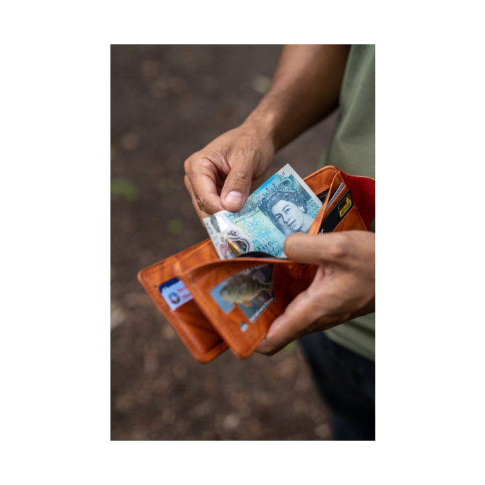 Portafoglio in pelle PU in stile classico con l'opera d'arte dell'artista di pesca Steve Phillips. Presenta una chiusura a scatto sicura e porta carte minimalisti con più slot. Regalo ideale. 12 x 9,5 x 1,5 cm. Altri lavori di Steve Phillips possono essere trovati qui: www.etsy.com/uk/shop/WILDIMAGESUK