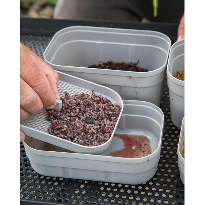 - Può essere utilizzato per drenare esche come caster e vermi.
